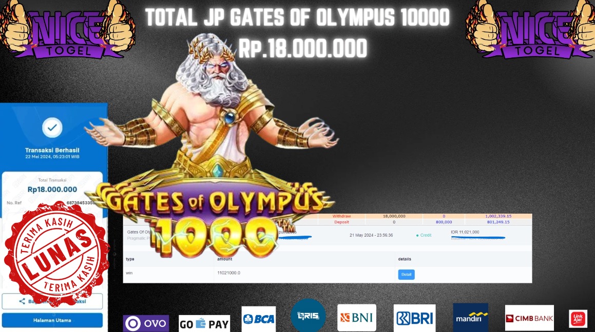 Selamat kepada User id : ad** Telah berhasil mendapatkan kemenangan besar pada permainan SLOT GATES OF OLYMPUS 1000 Dengan kemenangan Sebesar Rp.18.000.000,- Setelah mengisi formulir withdraw dengan kurung waktu hanya 5 – 10 menit pihak NICETOGEL sudah melakukan transfer kepada pemilik Userid dan dana sudah dapat di cairkan oleh pemenang. Bukti pembayaran yang kami berikan merupakan bukti pembayaran yang SAH / VALID yang langung di dapatkan melaui tanda transfer transaksi dari Bank yang di tuju.