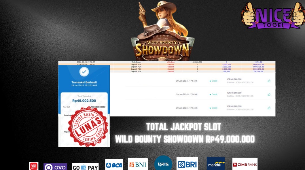 Selamat kepada User id : eg*** Telah berhasil mendapatkan kemenangan besar pada permainan SLOT WILD BOUNTY SHOWDOWN Dengan kemenangan Sebesar Rp. 49.000.000,- Setelah mengisi formulir withdraw dengan kurung waktu hanya 5 – 10 menit pihak NICETOGEL sudah melakukan transfer kepada pemilik Userid dan dana sudah dapat di cairkan oleh pemenang. Bukti pembayaran yang kami berikan merupakan bukti pembayaran yang SAH / VALID yang langung di dapatkan melaui tanda transfer transaksi dari Bank yang di tuju.