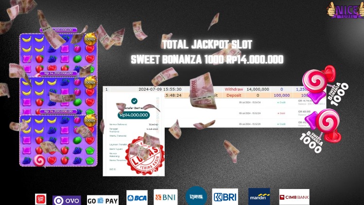 Selamat kepada User id : ri*** Telah berhasil mendapatkan kemenangan besar pada permainan SLOT SWEET BONANZA 1000 Dengan kemenangan Sebesar Rp.14.000.000,- Setelah mengisi formulir withdraw dengan kurung waktu hanya 5 – 10 menit pihak NICETOGEL sudah melakukan transfer kepada pemilik Userid dan dana sudah dapat di cairkan oleh pemenang. Bukti pembayaran yang kami berikan merupakan bukti pembayaran yang SAH / VALID yang langung di dapatkan melaui tanda transfer transaksi dari Bank yang di tuju.