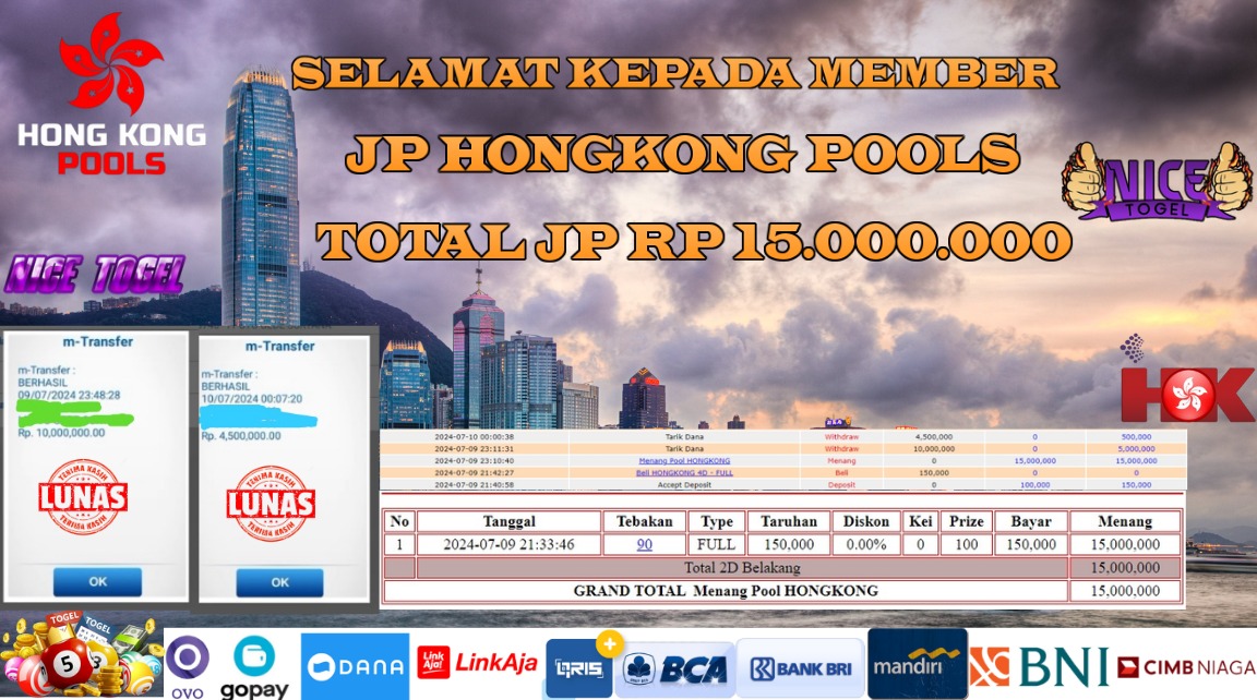 Selamat kepada User id : Put***99 Telah berhasil mendapatkan kemenangan besar pada permainan TOGEL HONGKONG POOLS Dengan kemenangan Sebesar Rp. 15.000.000,- Setelah mengisi formulir withdraw dengan kurung waktu hanya 5 – 10 menit pihak NICETOGEL sudah melakukan transfer kepada pemilik Userid dan dana sudah dapat di cairkan oleh pemenang. Bukti pembayaran yang kami berikan merupakan bukti pembayaran yang SAH / VALID yang langung di dapatkan melaui tanda transfer transaksi dari Bank yang di tuju.