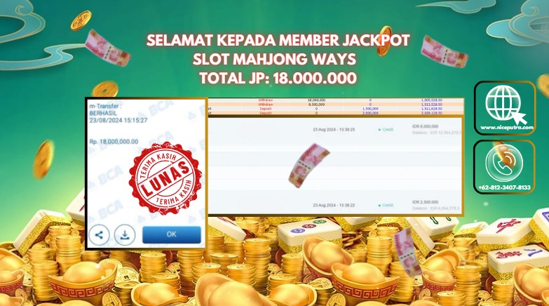 Selamat kepada User id : gus**** Telah berhasil mendapatkan kemenangan besar pada permainan SLOT MAHJONG WAYS Dengan kemenangan Sebesar Rp.18.000.000,- Setelah mengisi formulir withdraw dengan kurung waktu hanya 5 – 10 menit pihak NICETOGEL sudah melakukan transfer kepada pemilik Userid dan dana sudah dapat di cairkan oleh pemenang. Bukti pembayaran yang kami berikan merupakan bukti pembayaran yang SAH / VALID yang langung di dapatkan melaui tanda transfer transaksi dari Bank yang di tuju.