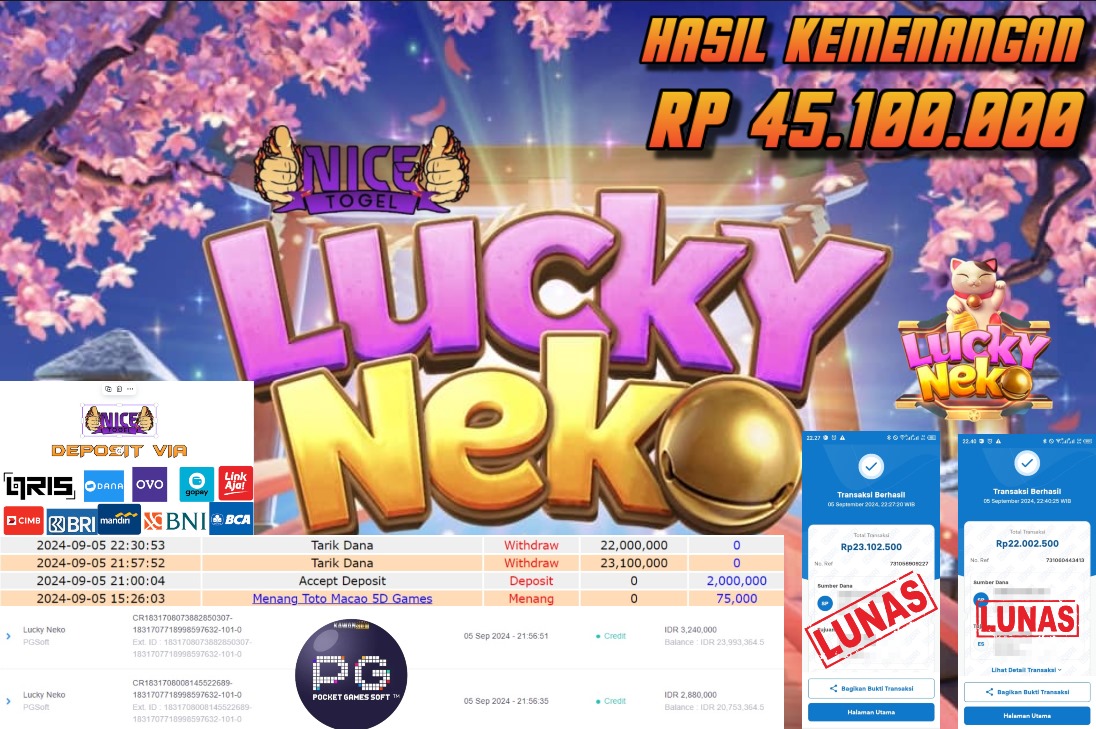 Selamat kepada User id : Poue** Telah berhasil mendapatkan kemenangan besar pada permainan SLOT LUCKY NEKO Dengan kemenangan Sebesar Rp.45.100.000,- Setelah mengisi formulir withdraw dengan kurung waktu hanya 5 – 10 menit pihak NICETOGEL sudah melakukan transfer kepada pemilik Userid dan dana sudah dapat di cairkan oleh pemenang. Bukti pembayaran yang kami berikan merupakan bukti pembayaran yang SAH / VALID yang langung di dapatkan melaui tanda transfer transaksi dari Bank yang di tuju.