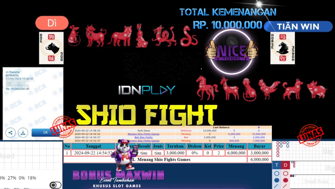 Selamat kepada User id : Ort1234** Telah berhasil mendapatkan kemenangan besar pada permainan LIVE GAME SHIO FIGHT Dengan kemenangan Sebesar Rp.10.000.000,- Setelah mengisi formulir withdraw dengan kurung waktu hanya 5 – 10 menit pihak NICETOGEL sudah melakukan transfer kepada pemilik Userid dan dana sudah dapat di cairkan oleh pemenang. Bukti pembayaran yang kami berikan merupakan bukti pembayaran yang SAH / VALID yang langung di dapatkan melaui tanda transfer transaksi dari Bank yang di tuju.