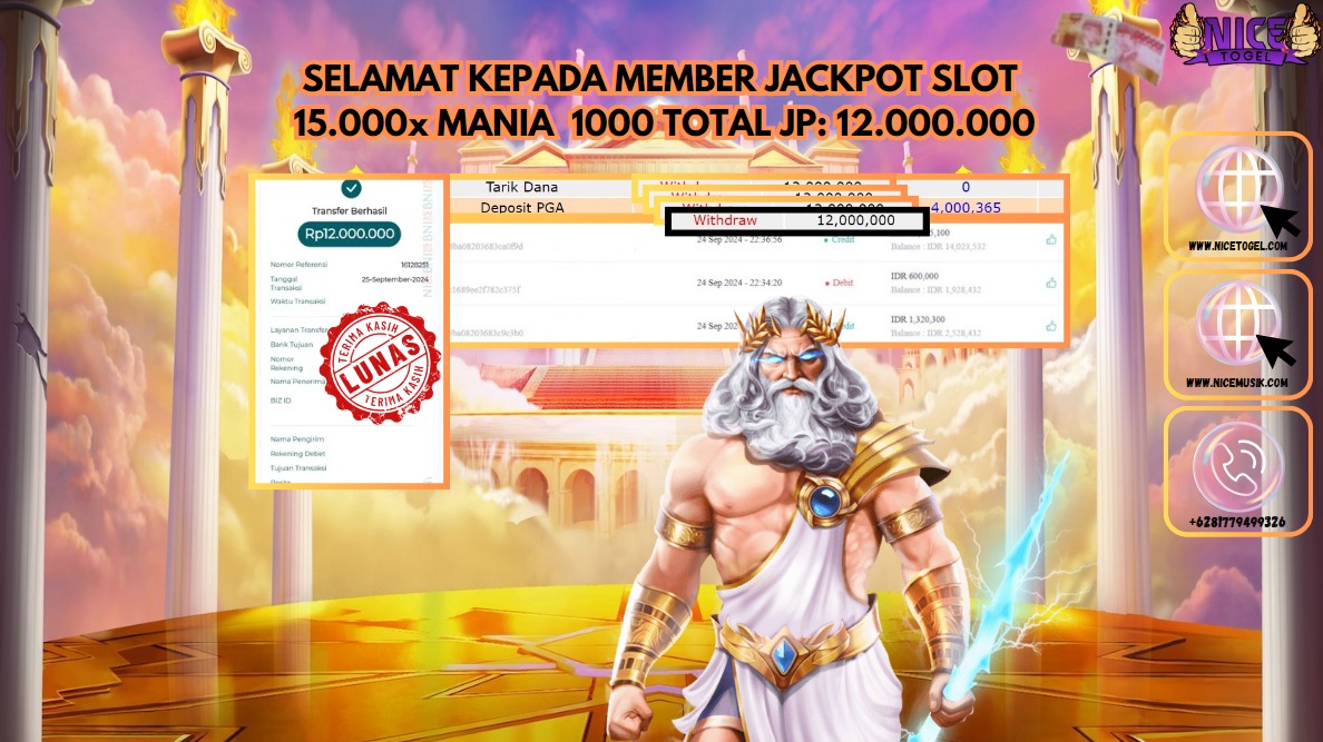 Selamat kepada User id : herm**** Telah berhasil mendapatkan kemenangan besar pada permainan SLOT GATES OF OLYMPUS 1000 Dengan kemenangan Sebesar Rp.12.000.000,- Setelah mengisi formulir withdraw dengan kurung waktu hanya 5 – 10 menit pihak NICETOGEL sudah melakukan transfer kepada pemilik Userid dan dana sudah dapat di cairkan oleh pemenang. Bukti pembayaran yang kami berikan merupakan bukti pembayaran yang SAH / VALID yang langung di dapatkan melaui tanda transfer transaksi dari Bank yang di tuju.