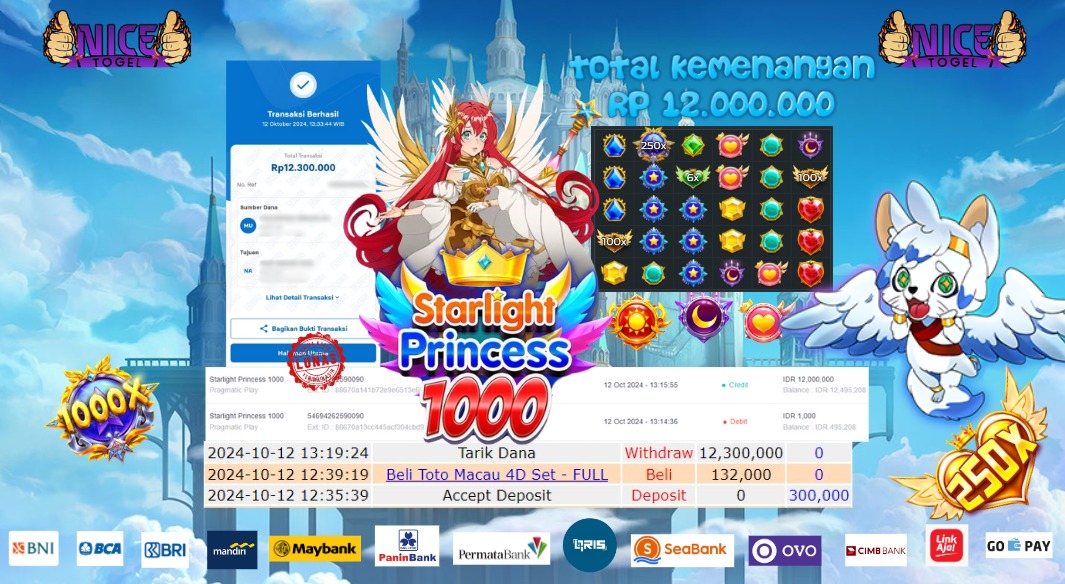 Selamat kepada User id : Emab*** Telah berhasil mendapatkan kemenangan besar pada permainan SLOT STARLIGHT PRINCESS 1000 Dengan kemenangan Sebesar Rp.12.000.000,- Setelah mengisi formulir withdraw dengan kurung waktu hanya 5 – 10 menit pihak NICETOGEL sudah melakukan transfer kepada pemilik Userid dan dana sudah dapat di cairkan oleh pemenang. Bukti pembayaran yang kami berikan merupakan bukti pembayaran yang SAH / VALID yang langung di dapatkan melaui tanda transfer transaksi dari Bank yang di tuju.