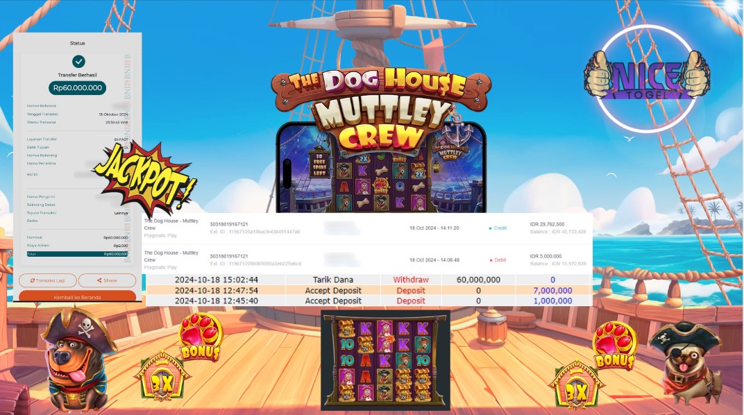 Selamat kepada User id : TON29*** Telah berhasil mendapatkan kemenangan besar pada permainan SLOT THE DOG HOUSE MUTTLEY CREW Dengan kemenangan Sebesar Rp.60.000.000,- Setelah mengisi formulir withdraw dengan kurung waktu hanya 5 – 10 menit pihak NICETOGEL sudah melakukan transfer kepada pemilik Userid dan dana sudah dapat di cairkan oleh pemenang. Bukti pembayaran yang kami berikan merupakan bukti pembayaran yang SAH / VALID yang langung di dapatkan melaui tanda transfer transaksi dari Bank yang di tuju.