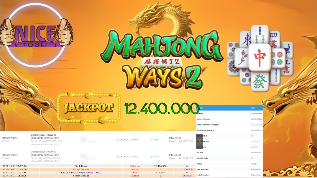 Selamat kepada User id : Sen*** Telah berhasil mendapatkan kemenangan besar pada permainan SLOT MAHJONG WAYS2 Dengan kemenangan Sebesar Rp.12.400.000,- Setelah mengisi formulir withdraw dengan kurung waktu hanya 5 – 10 menit pihak NICETOGEL sudah melakukan transfer kepada pemilik Userid dan dana sudah dapat di cairkan oleh pemenang. Bukti pembayaran yang kami berikan merupakan bukti pembayaran yang SAH / VALID yang langung di dapatkan melaui tanda transfer transaksi dari Bank yang di tuju.