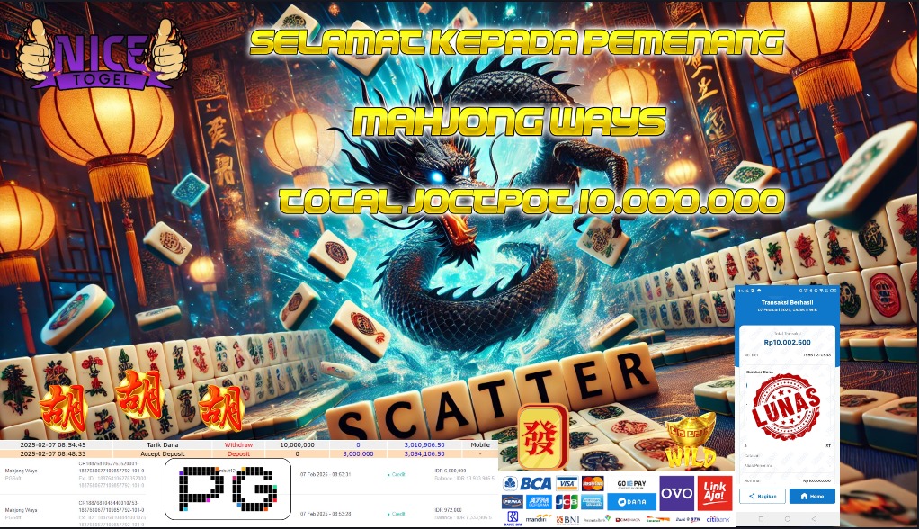 Selamat kepada User id : Gera55** Telah berhasil mendapatkan kemenangan besar pada permainan SLOT MAHJONG WAYS Dengan kemenangan Sebesar Rp.10.000.000,- Setelah mengisi formulir withdraw dengan kurung waktu hanya 5 – 10 menit pihak NICETOGEL sudah melakukan transfer kepada pemilik Userid dan dana sudah dapat di cairkan oleh pemenang. Bukti pembayaran yang kami berikan merupakan bukti pembayaran yang SAH / VALID yang langung di dapatkan melaui tanda transfer transaksi dari Bank yang di tuju.