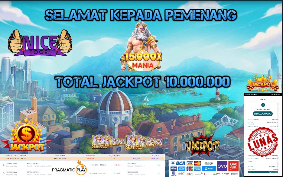Selamat kepada member NICETOGEL User id : Asde** Telah berhasil mendapatkan kemenangan besar pada permainan SLOT 15.000X MANIA Dengan kemenangan Sebesar Rp.10.000.000,- Setelah mengisi formulir withdraw dengan kurung waktu hanya 5 – 10 menit pihak NICETOGEL sudah melakukan transfer kepada pemilik Userid dan dana sudah dapat di cairkan oleh pemenang. Bukti pembayaran yang kami berikan merupakan bukti pembayaran yang SAH / VALID yang langung di dapatkan melaui tanda transfer transaksi dari Bank yang di tuju.