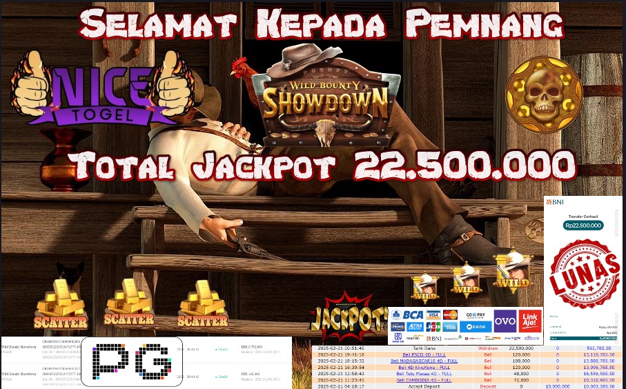 Selamat kepada member NICETOGEL User id : Liao** Telah berhasil mendapatkan kemenangan besar pada permainan SLOT WILD BANDITO SHOWDOWN Dengan kemenangan Sebesar Rp.22.500.000,- Setelah mengisi formulir withdraw dengan kurung waktu hanya 5 – 10 menit pihak NICETOGEL sudah melakukan transfer kepada pemilik Userid dan dana sudah dapat di cairkan oleh pemenang. Bukti pembayaran yang kami berikan merupakan bukti pembayaran yang SAH / VALID yang langung di dapatkan melaui tanda transfer transaksi dari Bank yang di tuju.