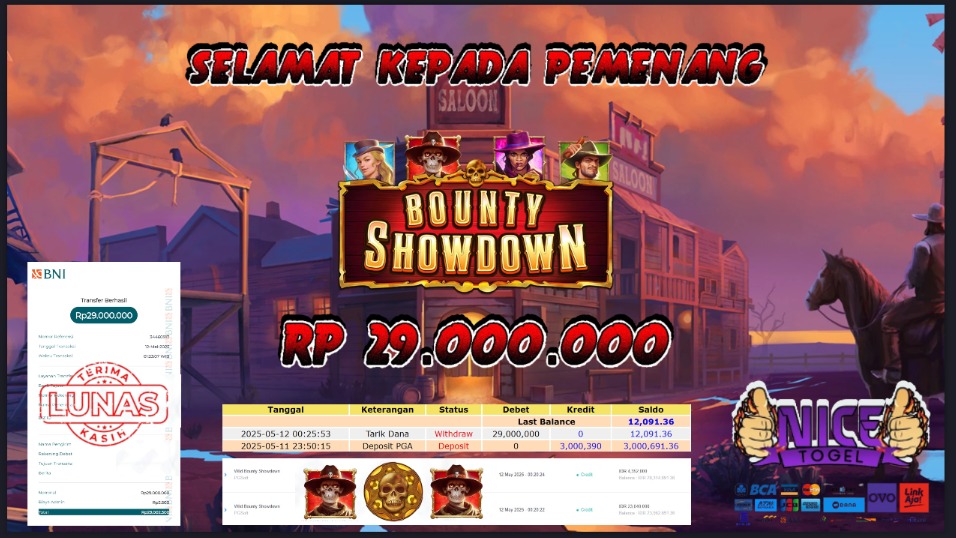 Selamat kepada member NICETOGEL User id :MEK** Telah berhasil mendapatkan kemenangan besar pada permainan SLOT WILD BOUNTY SHOWDOWN Rp Dengan kemenangan Sebesar Rp 29.000.000,- Setelah mengisi formulir withdraw dengan kurung waktu hanya 5 – 10 menit pihak NICETOGEL sudah melakukan transfer kepada pemilik Userid dan dana sudah dapat di cairkan oleh pemenang. Bukti pembayaran yang kami berikan merupakan bukti pembayaran yang SAH / VALID yang langung di dapatkan melaui tanda transfer transaksi dari Bank yang di tuju.