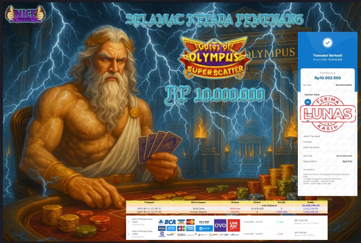 Selamat kepada member NICETOGEL User id : GRE** Telah berhasil mendapatkan kemenangan besar pada permainan SLOT GATES OF OLYMPUS SUPER SCATTER Dengan kemenangan Sebesar Rp.10.000.000,- Setelah mengisi formulir withdraw dengan kurung waktu hanya 5 – 10 menit pihak NICETOGEL sudah melakukan transfer kepada pemilik Userid dan dana sudah dapat di cairkan oleh pemenang. Bukti pembayaran yang kami berikan merupakan bukti pembayaran yang SAH / VALID yang langung di dapatkan melaui tanda transfer transaksi dari Bank yang di tuju.