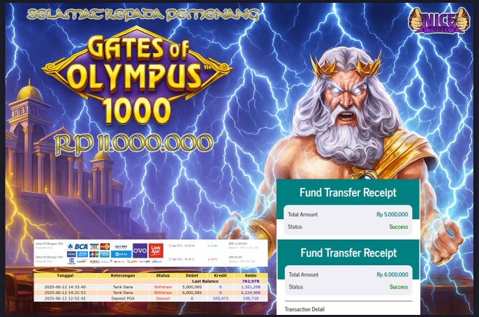Selamat kepada User id : NBC*** Telah berhasil mendapatkan kemenangan besar pada permainan BUKTI JACKPOT SLOT GATES OF OLYMPUS 1000 Dengan kemenangan Sebesar Rp.11.000.000,- Setelah mengisi formulir withdraw dengan kurung waktu hanya 5 – 10 menit pihak NICETOGEL sudah melakukan transfer kepada pemilik Userid dan dana sudah dapat di cairkan oleh pemenang. Bukti pembayaran yang kami berikan merupakan bukti pembayaran yang SAH / VALID yang langung di dapatkan melaui tanda transfer transaksi dari Bank yang di tuju.