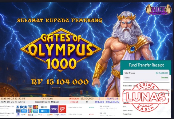 Selamat kepada member NICETOGEL User id :NUH**** Telah berhasil mendapatkan kemenangan besar pada permainan SLOT GATES OF OLYMPUS 1000 Dengan kemenangan Sebesar Rp.15.104.000,- Setelah mengisi formulir withdraw dengan kurung waktu hanya 5 – 10 menit pihak NICETOGEL sudah melakukan transfer kepada pemilik Userid dan dana sudah dapat di cairkan oleh pemenang. Bukti pembayaran yang kami berikan merupakan bukti pembayaran yang SAH / VALID yang langung di dapatkan melaui tanda transfer transaksi dari Bank yang di tuju.