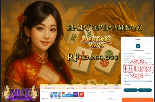 Selamat kepada member NICETOGEL User id :REF**** Telah berhasil mendapatkan kemenangan besar pada permainan JACKPOT SLOT MAHYONG WAYS Dengan kemenangan Sebesar Rp.10.200.000,- Setelah mengisi formulir withdraw dengan kurung waktu hanya 5 – 10 menit pihak NICETOGEL sudah melakukan transfer kepada pemilik Userid dan dana sudah dapat di cairkan oleh pemenang. Bukti pembayaran yang kami berikan merupakan bukti pembayaran yang SAH / VALID yang langung di dapatkan melaui tanda transfer transaksi dari Bank yang di tuju.