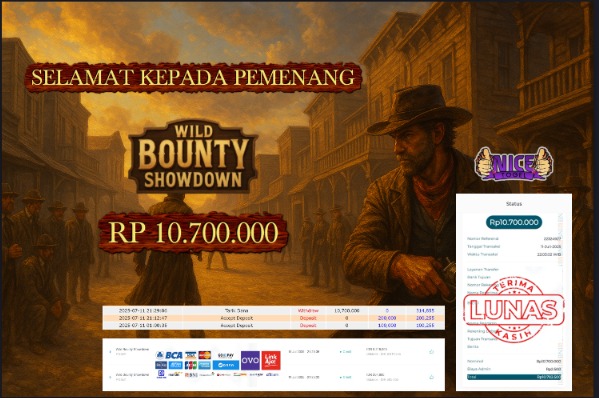 Selamat kepada User id : HGS*** Telah berhasil mendapatkan kemenangan besar pada permainan SLOT WILD BOUNTY SHOWDOWN Dengan kemenangan Sebesar Rp.10.700.000,- Setelah mengisi formulir withdraw dengan kurung waktu hanya 5 – 10 menit pihak NICETOGEL sudah melakukan transfer kepada pemilik Userid dan dana sudah dapat di cairkan oleh pemenang. Bukti pembayaran yang kami berikan merupakan bukti pembayaran yang SAH / VALID yang langung di dapatkan melaui tanda transfer transaksi dari Bank yang di tuju.