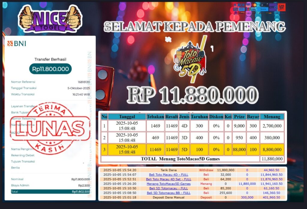 BUKTI JACKPOT TOGEL TOTOMACAU 5D Rp 11.880.000,- LUNAS