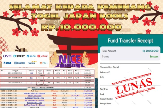 Selamat kepada User id : JON**** Telah berhasil mendapatkan kemenangan besar pada permainan JACKPOT TOGEL NEWYORKMID Dengan kemenangan Sebesar Rp.10.000.000,- Setelah … Baca Selengkapnya...