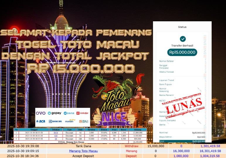 BUKTI JACKPOT TOGEL TOTO MACAU Rp 15.000.000,- LUNAS