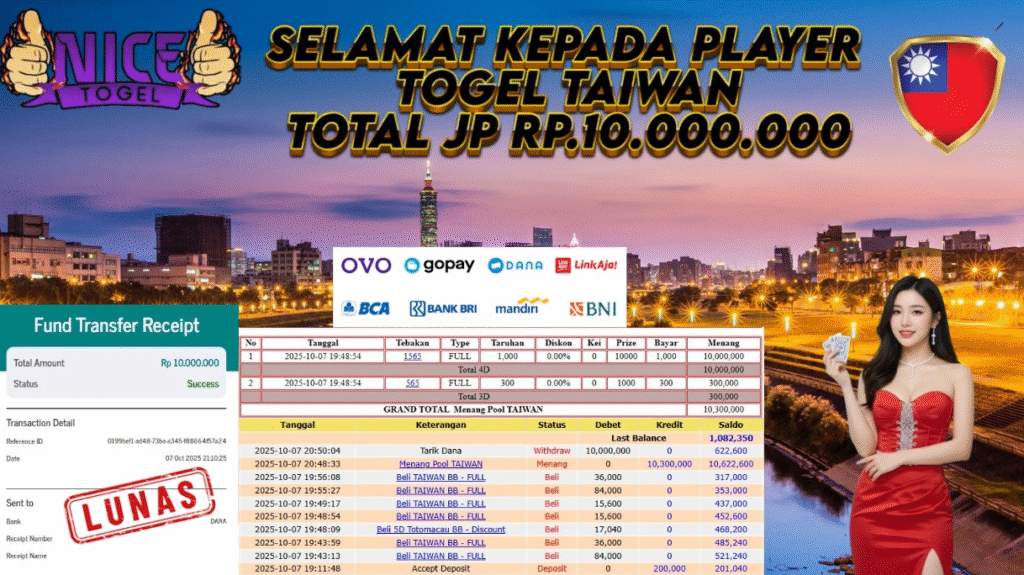 Selamat kepada User id : GAGA** Telah berhasil mendapatkan kemenangan besar pada permainan JACKPOT TOGEL TAIWAN Dengan kemenangan Sebesar Rp.10.000.000,- … Baca Selengkapnya...