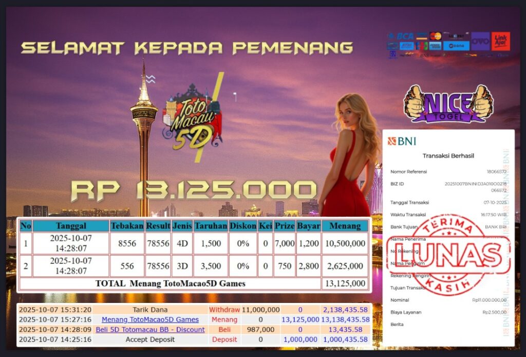BUKTI JACKPOT LIVE GAME ROULETTE Rp 10.000.000,- LUNAS