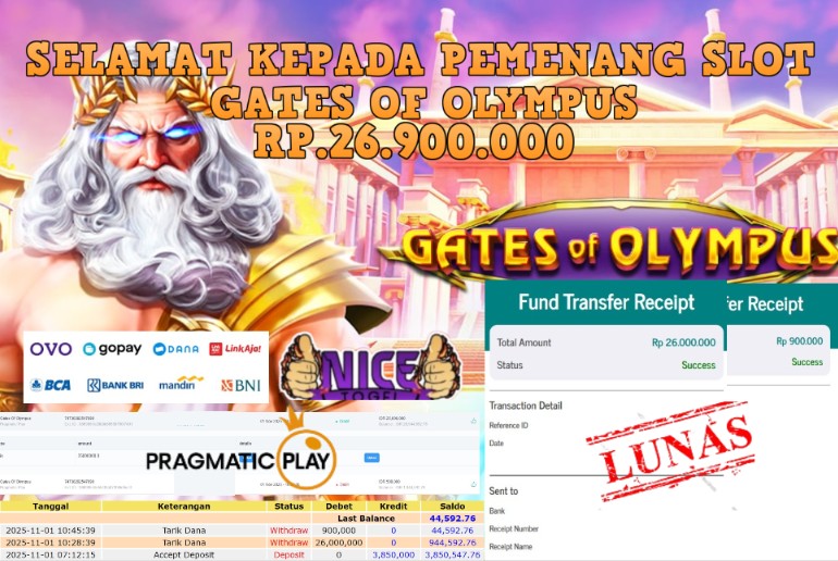 Selamat kepada User id : AISS00**** Telah berhasil mendapatkan kemenangan besar pada permainan JACKPOT SLOT GATES OF OLYMPUS Dengan kemenangan Sebesar Rp.26.900.000,- Setelah mengisi formulir withdraw dengan kurung waktu hanya 5 – 10 menit pihak NICETOGEL sudah melakukan transfer kepada pemilik Userid dan dana sudah dapat di cairkan oleh pemenang. Bukti pembayaran yang kami berikan merupakan bukti pembayaran yang SAH / VALID yang langung di dapatkan melaui tanda transfer transaksi dari Bank yang di tuju.