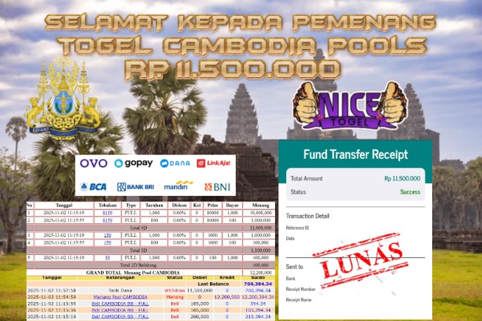 BUKTI JACKPOT TOGEL CAMBODIA POOLS Rp 11.500.000,- LUNAS
