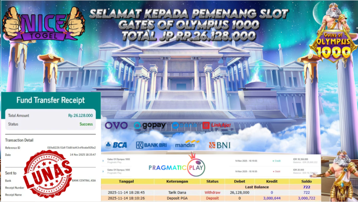 Kami mengucapakan banyak Terima Kasih Kepada pemenang karena sudah mempercayakan kami sebagai Bandar Tepercaya yang membayar semua kemenangan member hingga lunas.