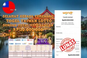 BUKTI JACKPOT TOGEL TAIWAN LOTTO Rp 20.000.000,- LUNAS