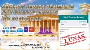 Selamat kepada User id : ANJIR**** Telah berhasil mendapatkan kemenangan besar pada permainan SLOT GATES OF OLYMPUS Dengan kemenangan Sebesar Rp 10.400.000,- Setelah mengisi formulir withdraw dengan kurung waktu hanya 5 – 10 menit pihak NICETOGEL sudah melakukan transfer kepada pemilik Userid dan dana sudah dapat di cairkan oleh pemenang. Bukti pembayaran yang kami berikan merupakan bukti pembayaran yang SAH / VALID yang langung di dapatkan melaui tanda transfer transaksi dari Bank yang di tuju.