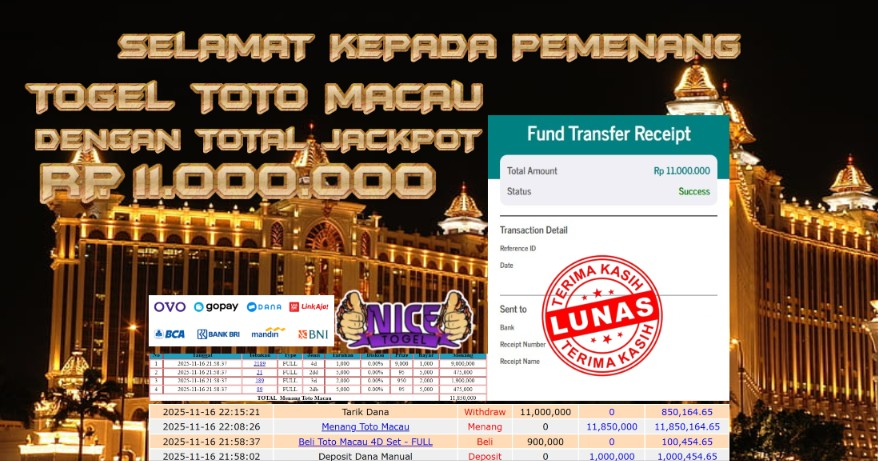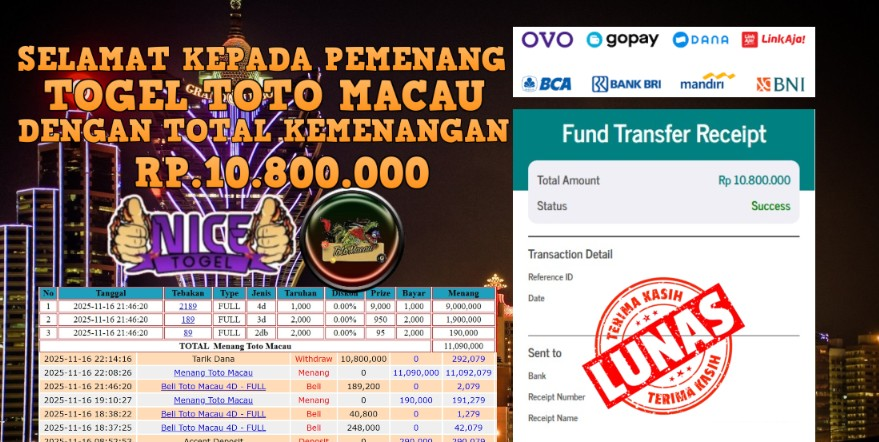 Selamat kepada User id : UDIN**** Telah berhasil mendapatkan kemenangan besar pada permainan JACKPOT TOGEL TOTO MACAU Dengan kemenangan Sebesar … Baca Selengkapnya...