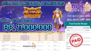 Selamat kepada User id : SUND**** Telah berhasil mendapatkan kemenangan besar pada permainan SLOT GATES OF OLYMPUS SUPER SCATTER Dengan kemenangan Sebesar Rp. 11.000.000,- Setelah mengisi formulir withdraw dengan kurung waktu hanya 5 – 10 menit pihak NICETOGEL sudah melakukan transfer kepada pemilik Userid dan dana sudah dapat di cairkan oleh pemenang. Bukti pembayaran yang kami berikan merupakan bukti pembayaran yang SAH / VALID yang langung di dapatkan melaui tanda transfer transaksi dari Bank yang di tuju.