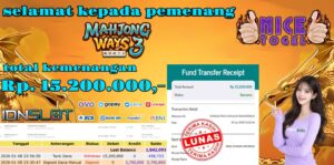 Selamat kepada User id : MUD**** Telah berhasil mendapatkan kemenangan besar pada permainan SLOT MAHJONG WAYS 3 Dengan kemenangan Sebesar Rp. 15.200.000,- Setelah mengisi formulir withdraw dengan kurung waktu hanya 5 – 10 menit pihak NICETOGEL sudah melakukan transfer kepada pemilik Userid dan dana sudah dapat di cairkan oleh pemenang. Bukti pembayaran yang kami berikan merupakan bukti pembayaran yang SAH / VALID yang langung di dapatkan melaui tanda transfer transaksi dari Bank yang di tuju.