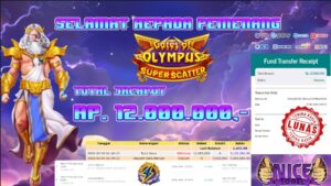 Selamat kepada User id : IND**** Telah berhasil mendapatkan kemenangan besar pada permainan SLOT GATES OF OLYMPUS SUPER SCATTER   Dengan kemenangan Sebesar Rp. 12.000.000,- Setelah mengisi formulir withdraw dengan kurung waktu hanya 5 – 10 menit pihak NICETOGEL sudah melakukan transfer kepada pemilik Userid dan dana sudah dapat di cairkan oleh pemenang. Bukti pembayaran yang kami berikan merupakan bukti pembayaran yang SAH / VALID yang langung di dapatkan melaui tanda transfer transaksi dari Bank yang di tuju.