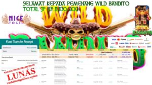 BUKTI JACKPOT SLOT WILD BANDITO Rp. 10.000.000,- LUNAS